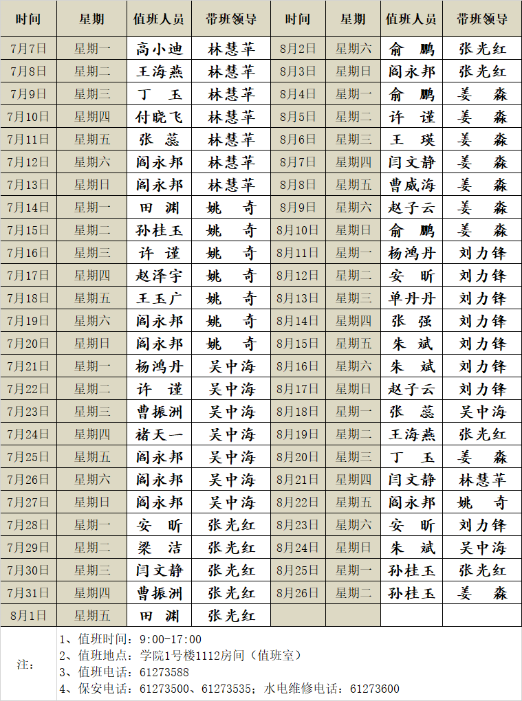 软件与微电子学院2025年暑期值班表