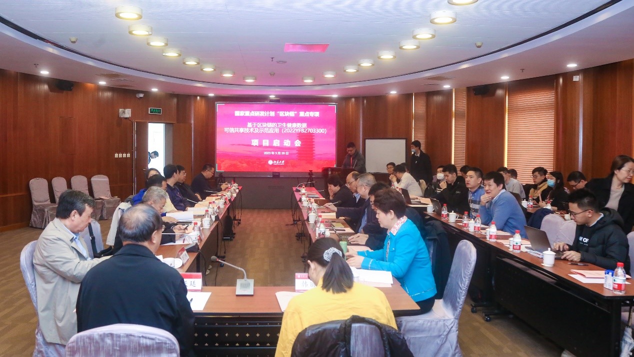 2023年3月26日,国家重点研发计划“区块链”重点专项“基于区块链的卫生健康数据可信共享技术及示范应用”项目启动会在北京大学召开。工信部产业发展促进中心专项一处项目主管韩丽丽,“区块链”重点专项专家组组长斯雪明教授,项目责任专家清华大学柴跃廷教授等专家出席会议。北京大学科研部相关负责人以及项目组骨干出席了启动会。北京大学软件工程国家工程研究中心主任张世琨研究员和项目责任专家柴跃廷教授分别主持了会议。