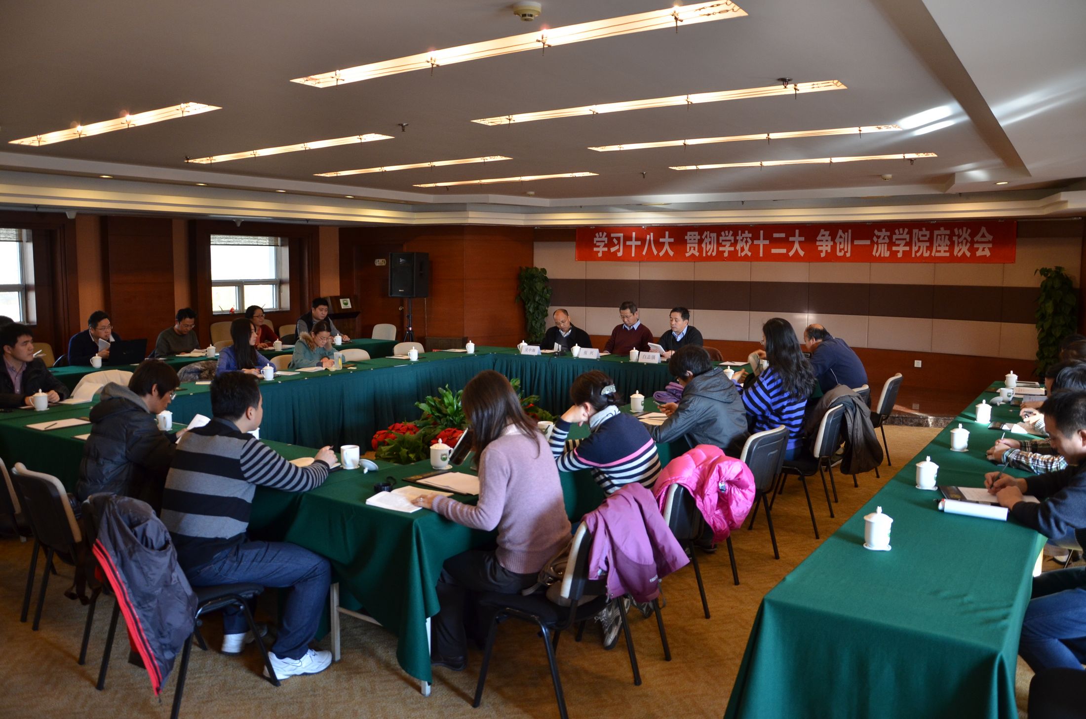 参会的全体党员根据自己对十八大报告的理解,结合学院的发展,结合自己的工作内容,谈了一些感想。
