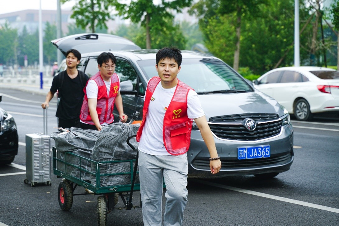 校园中随处可见志愿者的身影,他们身着统一服装,为新生解答问题、搬运行李、提供热情周到的引导服务,帮助新生更好地熟悉校园、进行报到流程。
