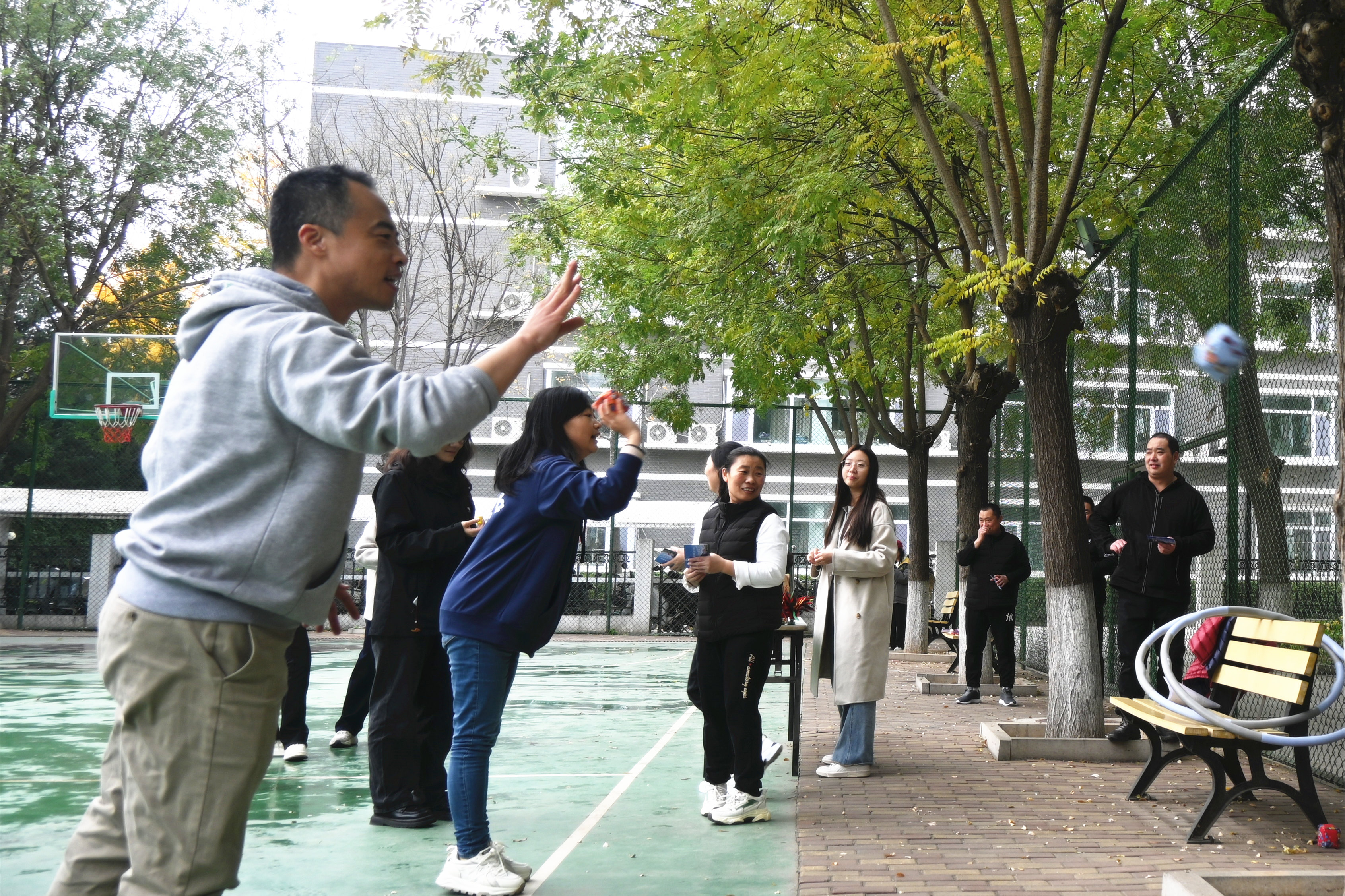 沙包投准项目中,教职工们精准投掷,每一个投中都引起大家的欢呼。