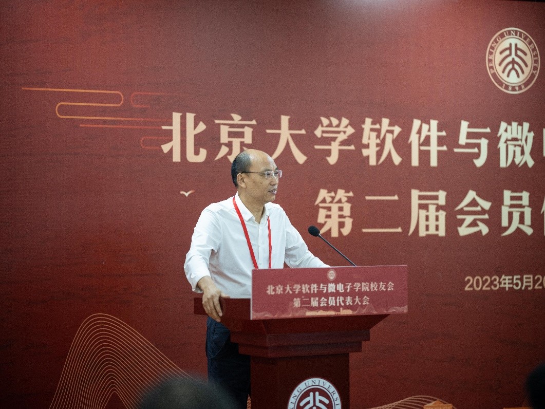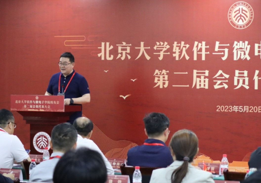 2023年5月20日上午,北京大学软件与微电子学院校友会第二届会员代表大会在大兴校区举行。北京大学校友工作办公室副主任李存峰,北京市大兴经开区管委会党工委书记、主任常学智,学院院长吴中海、党委书记张光红,原学院院长张兴,原学院党委书记白志强、原学院党委书记陈向群以及来自全国各地的100余名学院校友会第二届会员代表参加大会。大会由学院校友会执行会长姜淼主持。