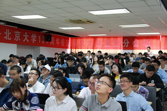 回眸百廿,卓然不凡。软件与微电子学院也已成立十五年之久,十五年的栉风沐雨,也算是耕耘共收获一色,奋斗与成绩齐飞。在今天这个特殊的日子,软件与微电子学院组织未能现场参与校庆纪念大会的师生,在3302教室观看北京大学120周年校庆纪念大会直播。