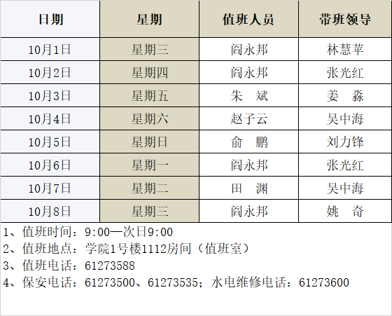 • 软件与微电子学院2025年国庆节、中秋节放假期间值班表